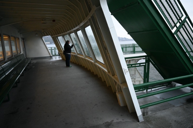 staying out of the rain and weather on the ferry to Bremberton